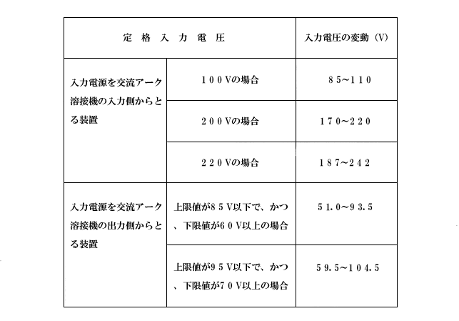 (1) 第1号の「装置を作動させ」とは、装置を交流アーク溶接機に接続し、装置に定格入力電圧を加え