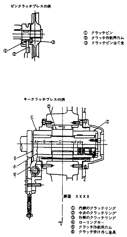 ションクラッチ式のプレス等に取り付ける両手操作式安全装置があること。