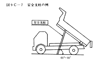 安全支柱 | 長尺の堅木材またはパイプ等でダンプした荷台を支える方法(車両には装備できない)
