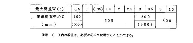 別添 1 JlS D6003(ショベルローダ)の3・2・3 「安定度試験」 3・2・3 安定度試験 定定度の試験は、傾斜試験機を用いて、前後安定度及び左右安定度について、 次の4方法の試験を行う。 この場合、駐車ブレーキを掛け、運転者は乗らずに試験を行う。 また、車輪のスリップを防ぐために、床との摩擦係数を増加させるテープや塗科などは用いてもよ いが、車輪止めを使ってはならない。ただし、試験4、についてはスリップを防止するために図3に示 す車輪止めを用いる。試験1 水平にした傾斜試験機の上に、基準負荷状態のショベルローダの前車軸を装置の傾斜軸と平 行に置き、この状態からバケットヒンジピン中心の車体最前部からの水平距離が最大になる位置まで 上げ床を規定のこう配まで傾ける。 試験2 水平にした傾斜試験機の上に、基準負荷状態のショベルローダの前車軸を装置の傾斜軸と平 行に置き、床を規定のこう配まで傾ける。 試験3 水平にした傾斜試験機の上に、基準負荷状態のショベルロ一ダを載せ、前輪の接地点中心(2) と後車軸中心を結ぶ線の傾斜床への投影を傾斜床装置の傾斜軸と平行に置き、この状態からバケット を最高に上げ、床を規定のこう配まで傾ける。この場合傾斜軸側かじ取り車輪は、傾斜軸と平行とす る。 注 (2)前輪が複輪の場合は、前輪の接地点中心は外側の車輪の接地点を採るものとする。 試験4 水平にした傾斜試験機の上に、基準無負荷状態のショベルローダを載せ、右側又は左側の前 後車輪の外側面を傾斜試験機の車輪止めに接して、床を規定のこう配まで傾ける。この場合傾斜軸側 かじ取り車輪は、傾斜軸と平行とする。 2 JlS D6001(フォークリフトトラック)の3・1・1 3・1・1 基準荷重中心は、最大荷重の種類により、表3のとおりとする。 表3