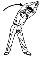 背伸びの姿勢から左右にゆっくりと息を止めないで曲げる。 | ![]() |
