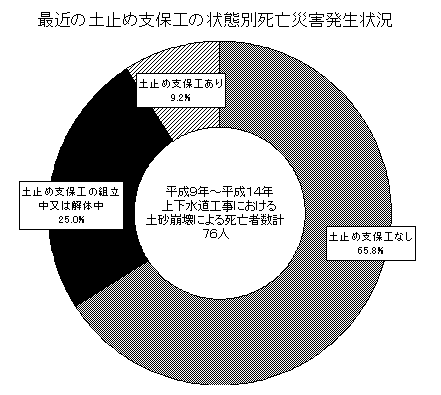 土砂崩壊災害による土止め支保工の状態別死亡災害発生状況(上下水道工事)