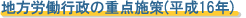 平成13年8月末に、経済産業省と共同で策定した雇用のミスマッチ解消や新たな雇用創出のための施策プログラムである「地域産業・雇用対策プログラム」について、引き続き、経済産業局、都道府県、経済団体等の関係機関と連携して取り組む。 |