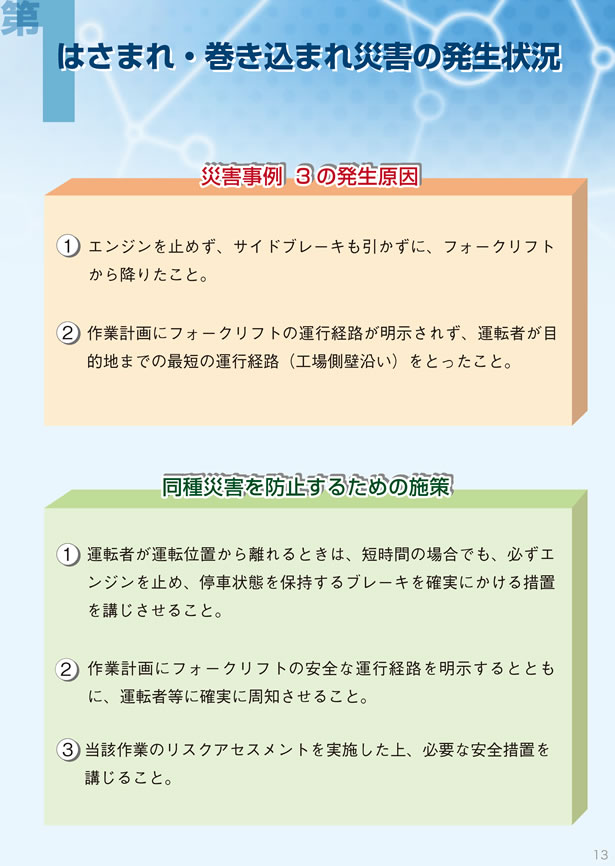 第1 はさまれ・巻き込まれ災害の発生状況 災害事例3の発生原因/同種災害を防止するための施策