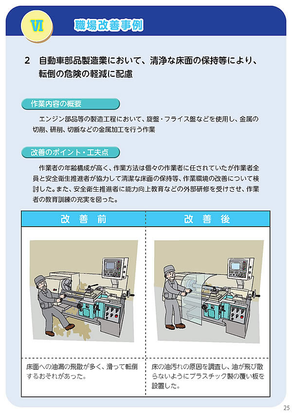 「Y. 職場改善事例 2 自動車部品製造業において、清浄な床面の保持等により、転倒の危険の軽減に配慮」