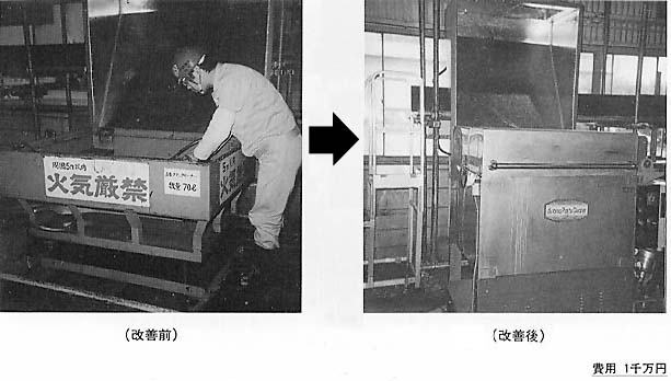 そこで、自動部品洗浄機、臭気排気フードを導入し、手洗作業の減少と臭気の除去を図った。